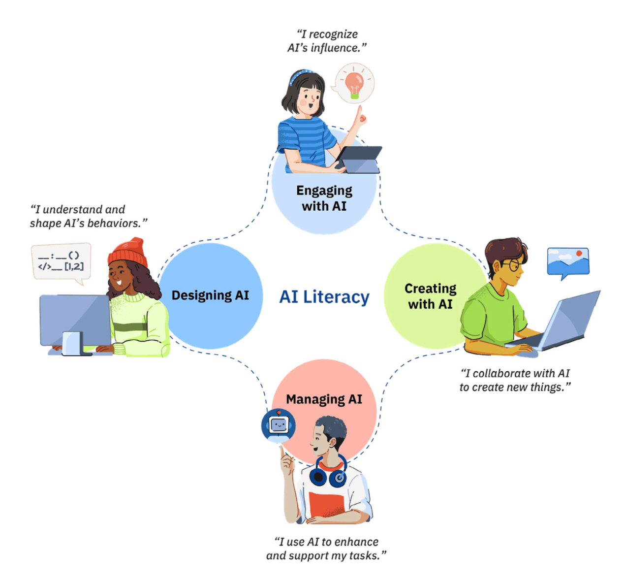 Kompetensi ini mencakup pengetahuan dasar tentang AI, keterampilan untuk mengaplikasikannya dalam kehidupan sehari-hari, kemampuan mengevaluasi hasil AI secara kritis, serta pemahaman mendalam tentang pentingnya etika, keadilan, dan akuntabilitas dalam pengembangannya.